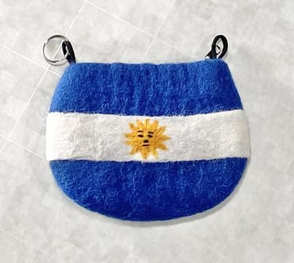 ネパール産の手作りポーチ!フェルト生地ハンドメイド。両サイドのループを使えば、ポシェットにもなります!手作り独特の温盛りが有り、とっても可愛らしいオススメアイテムです! アルゼンティーナ以外にブラジルも有ります!あなたはどっち派?^_^ サイズ 縦12.5×横16(cm) 表地 毛 裏地 ポリエステル